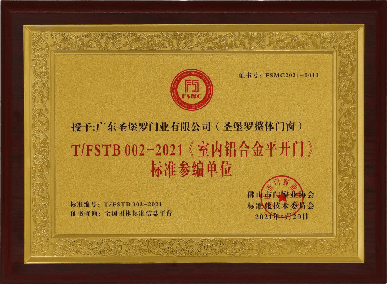 导语: 近期,依据国家标准化管理委员会、民政部制定的《团体标准管理规定》,由佛山市门窗业协会、广东圣堡罗门业有限公司等单位起草的《室内铝合金平开门》团体标准,经佛山市门窗业协会标准化技术委员会专家审核通过,正式批准发布,并于2021年5月1...