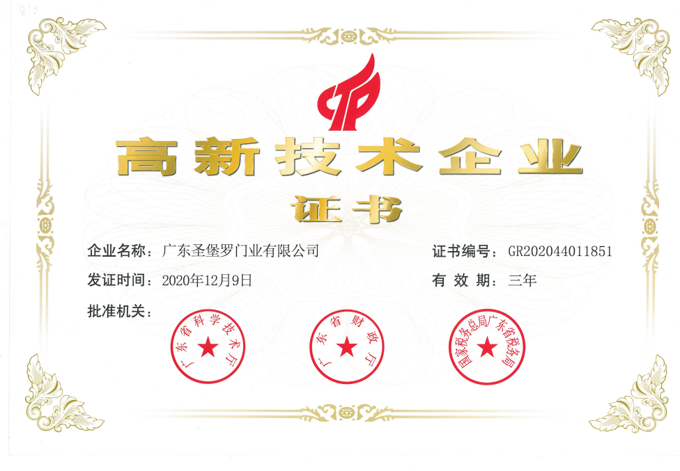 近日,圣堡罗整体门窗凭借雄厚的技术实力和强大的创新力,再次通过了2020年度国家 级高新技术企业资质认定,荣获由广东省科学技术厅、广东省财政厅、国家税务总局广东省税务局联合认证颁发的《高新技术企业证书》。 “高新技术企业”评定要求严格,需经...
