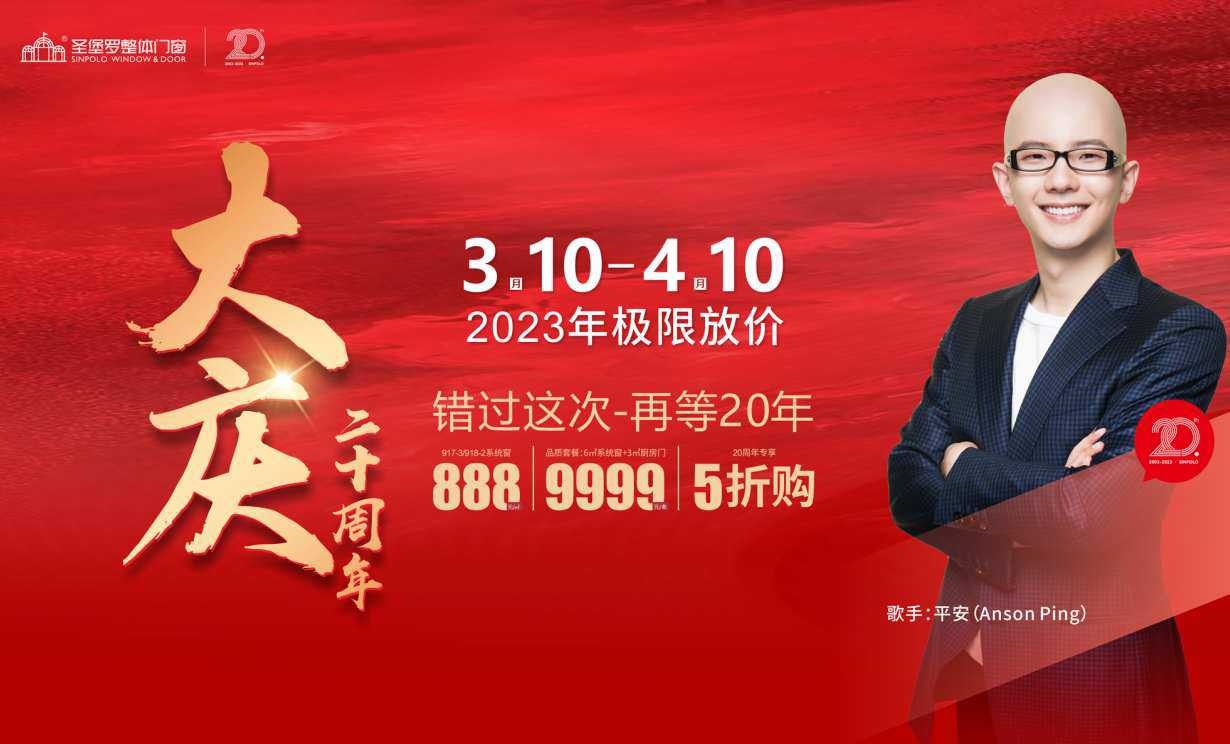 20年春华秋实,20年栉风沐雨。 2023年,正值圣堡罗整体门窗20周年大庆,在品牌、渠道、产品、形象、设计全面升级后,为全面拓宽品牌市场覆盖面,与终端经销商携手同庆,诚挚答谢广大消费者多年信任与支持,圣堡罗特筹备了一场燃情让利盛会,在20周年大庆期间闪耀献礼。