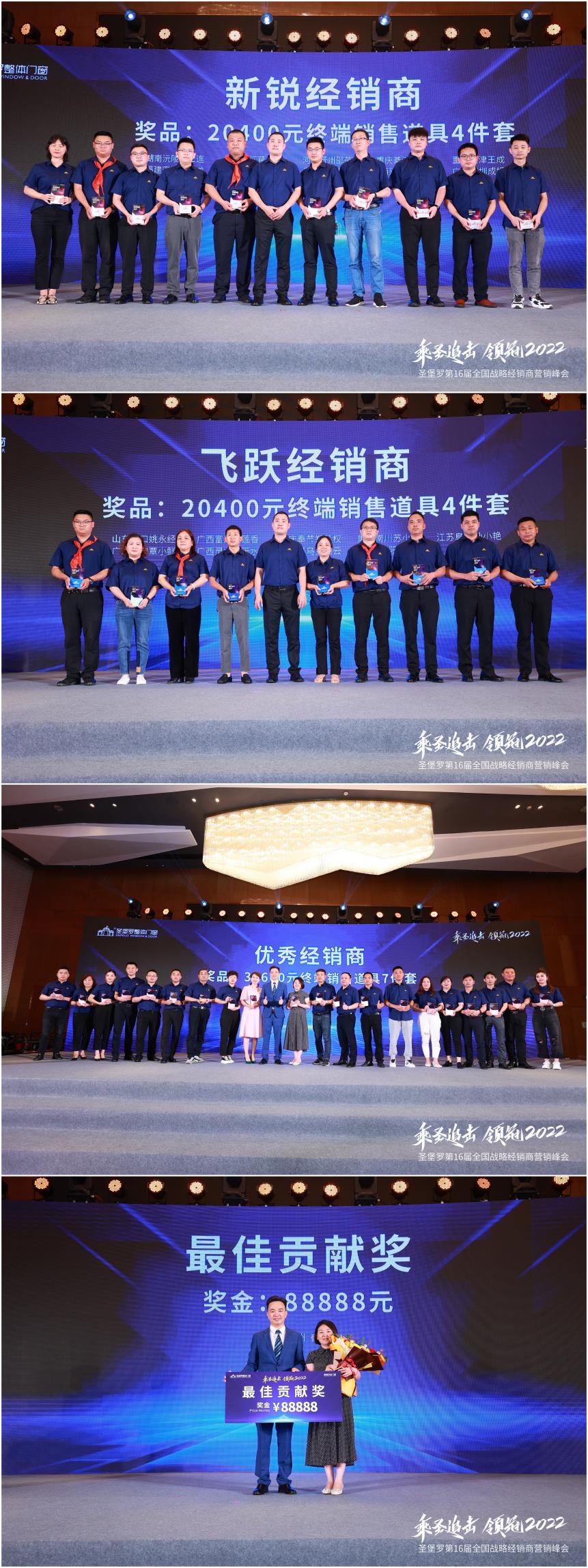 其中,四川泸州崔莲获得最佳贡献奖,另外,数十名经销商获得优秀经销商、飞跃经销商、新锐经销商等称号,并获得企业颁发的丰富奖金和奖品。企业的大方行径,让现场观众为圣堡罗点赞。同时,也激励经销商跟紧企业前进的脚步,再创辉煌。