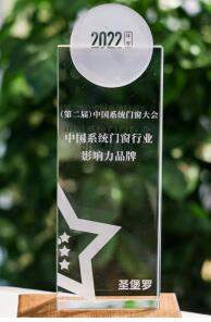 9月5日在2022系统门窗大会上,圣堡罗获颁“2022年度中国系统门窗行业影响力品牌”,圣堡罗家居集团董事长吴国洪喜提“2022年度中国系统门窗行业优秀企业家”大奖。