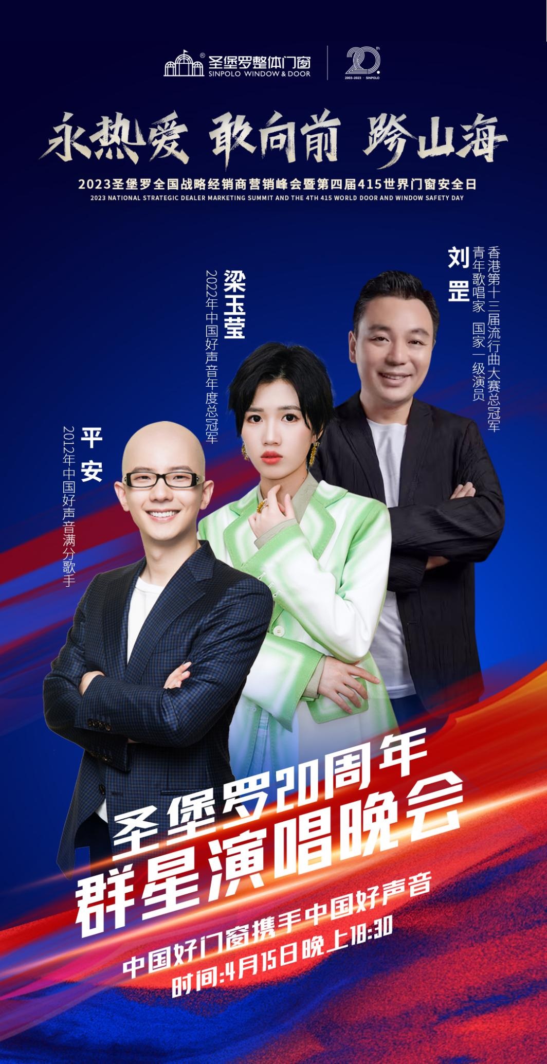 永热爱,敢向前,跨山海。2023年4月15日,2023圣堡罗全国战略经销商营销峰会暨第四届415世界门窗安全日,圣堡罗整体门窗20周年庆典接受检阅。