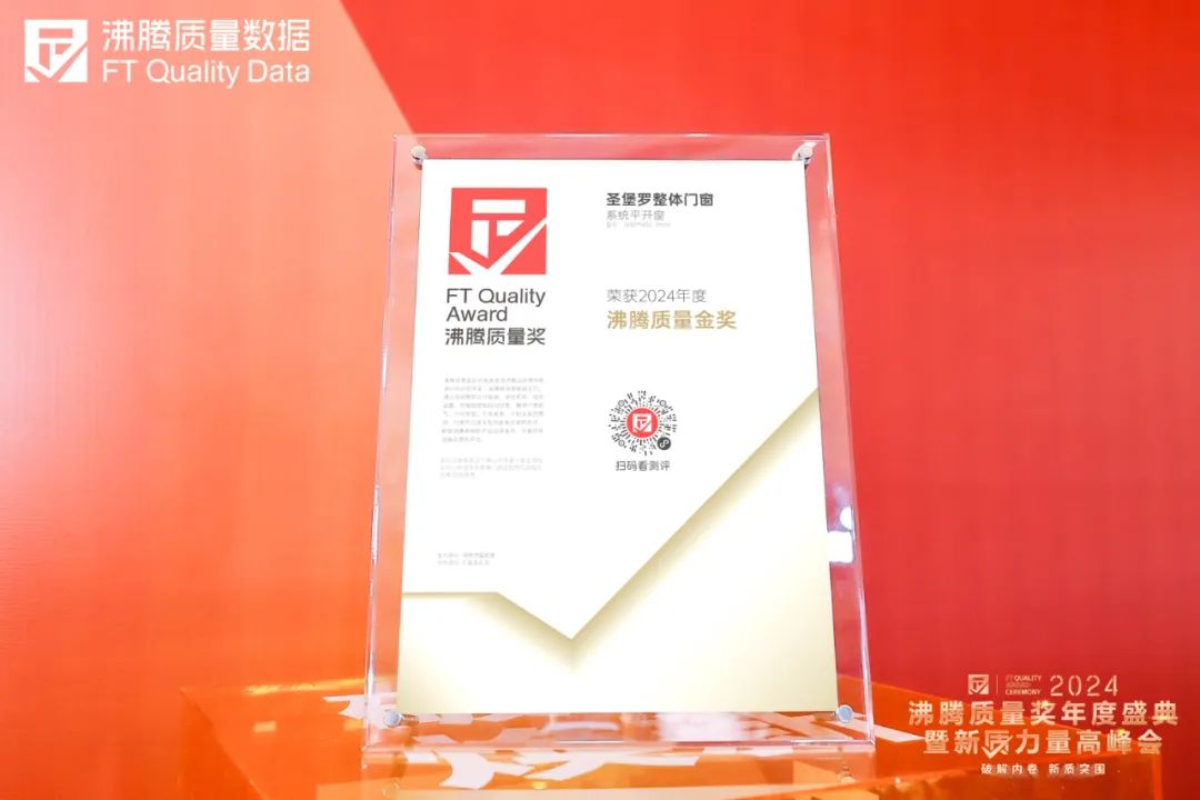在相关行业协会、质检机构、品牌企业、供应链企业、电商平台及主流媒体等300余位领导嘉宾共同见证下,历经多项严苛检测与客观评选的圣堡罗整体门窗的系统平开窗产品,荣获2024年度沸腾质量金奖!