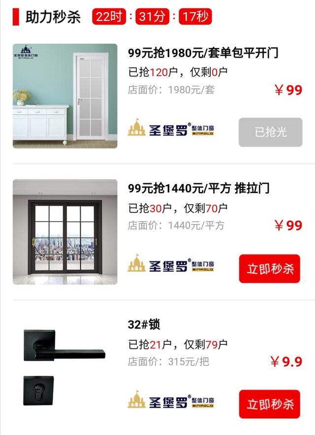 值得一提的是,近日圣堡罗整体门窗又放出“大招”,推出“开门大放价,直播抢工厂”活动,将在3月8号19:00准时直播开抢。届时将有超低价秒杀、9.9代金券、红包雨现金抢不停等福利,总部疯狂补贴,疯抢2小时,活动优惠力度不容小觑。