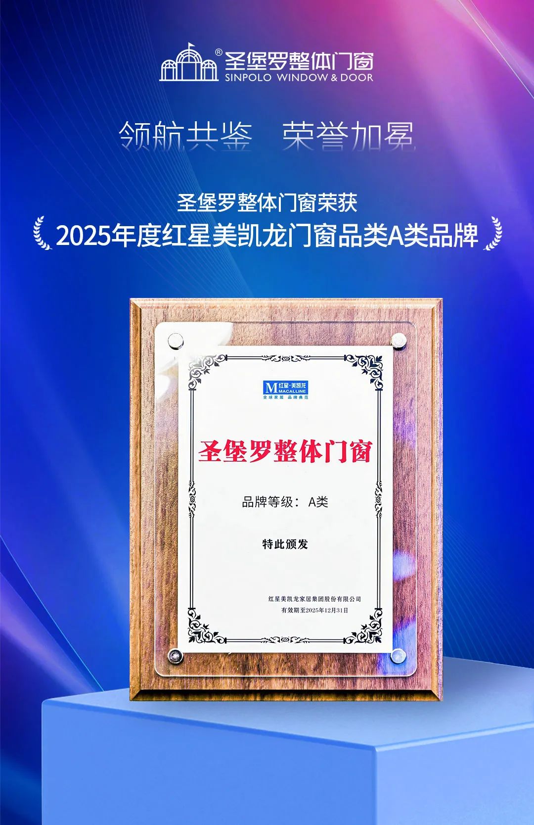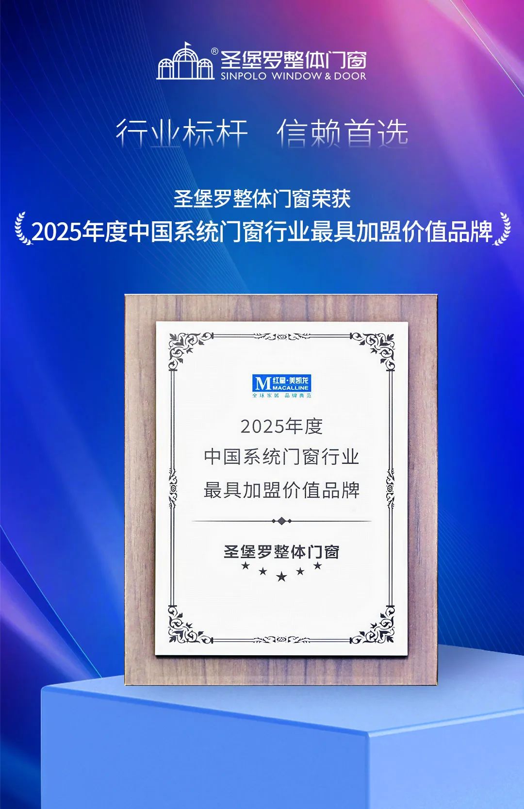 力,圣堡罗从众多参选品牌中脱颖而出,获评“ 2025年度红星美凯龙门窗品类A类品牌 ”及“ 2025年度中国系统门窗行业最具加盟价值品牌 ”双项殊荣。