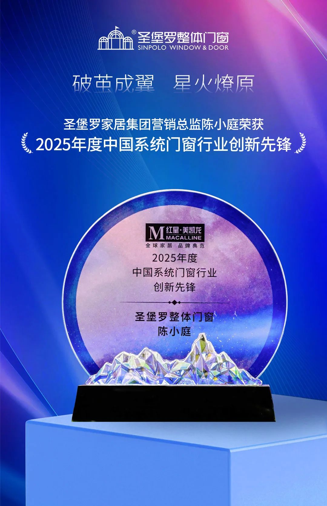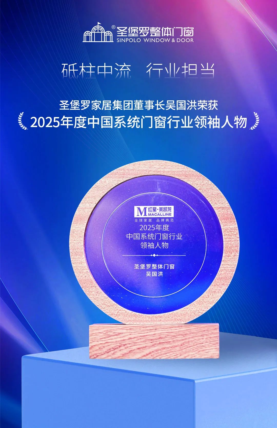 同时,圣堡罗家居集团董事长吴国洪还获评“ 2025年度中国系统门窗行业领袖人物 ”,圣堡罗家居集团营销总监陈小庭获评“ 2025年度中国系统门窗行业创新先锋 ”。