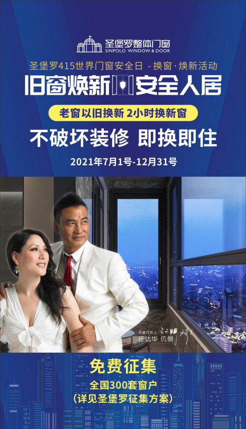 圣堡罗整体门窗一直关注门窗安全,以打造安全人居为己任,持续不断地把安全、隔音、节能、舒适的新安全人居带给千家万户。2020年,圣堡罗整体门窗设立了“世界门窗安全日”期盼通过每年的门窗安全公益行动,能够呼吁更多的朋友关注门窗安全。2021年7月1日起,圣堡罗整体门窗推出“旧窗焕新·安全人居”的主题活动:老窗以旧换新,2小时换新窗,不破坏装修,即装即住,为老房子换新窗带来巨大福音!