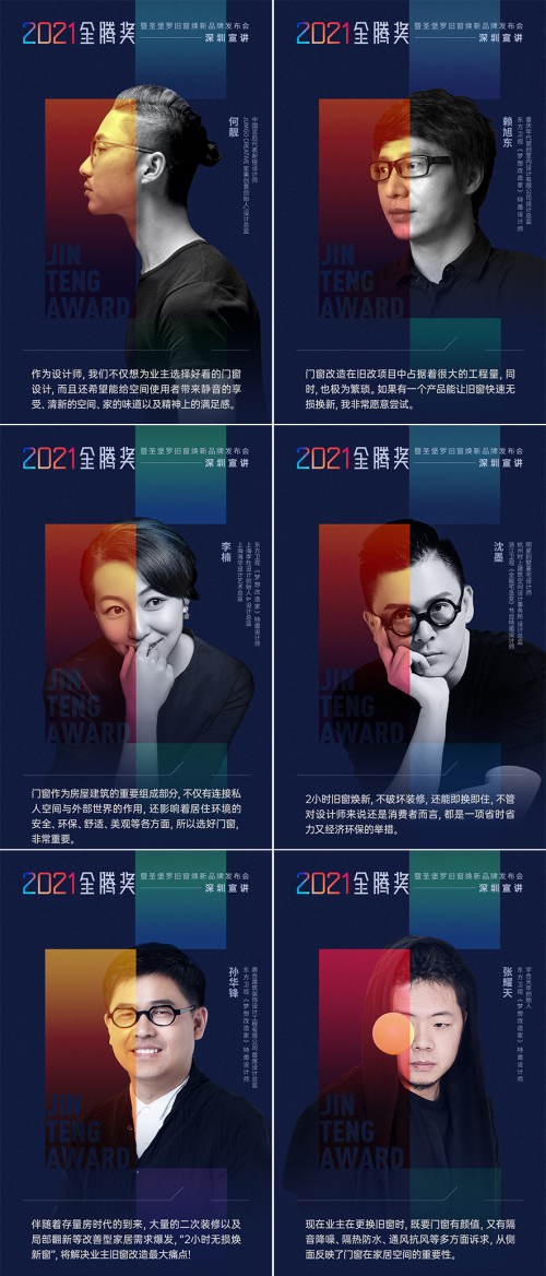 届时2021金腾奖评委、明星御用设计师孟也,优居总编辑及研究院院长、企业战略及品牌营销观察家张永志,佛山市门窗业协会会长、圣堡罗整体门窗董事长吴国洪,将首度同台开讲,引领“设计×家居”新风尚。